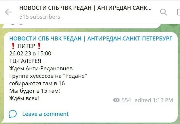 事發兩天前,聖彼得堡當地的旅團成員通過Telegram頻道組織聚會,約好下午4點在購物中心見面。但他們沒想到的是,兩個“反蜘蛛”組織同時盯上了他們,並且進行了一次最成功的動員。