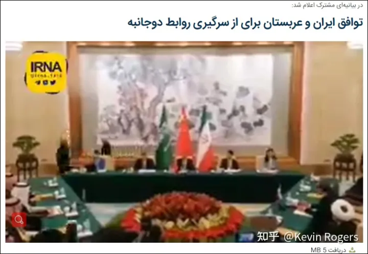 23年3月10日晚,伊朗、沙特、中國三國在北京發表三方聯合聲明宣佈,三國於3月6日至10日在北京舉行會談,沙特和伊朗達成一份協議,包括同意恢復雙方外交關係,在至多兩個月內重開雙方使館和代表機構,安排互派大使,並探討加強雙邊關係。