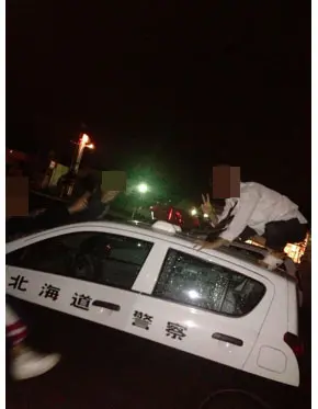 經典的例子如:在北海道,一個19歲男子爬上一輛巡邏車車頂,比着剪刀手拍照。