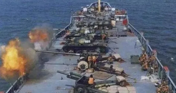 1996年美國用航空母艦干預中國時,中國海軍不得不把坦克和步兵炮裝在民船上充當軍艦。