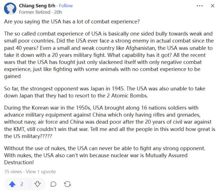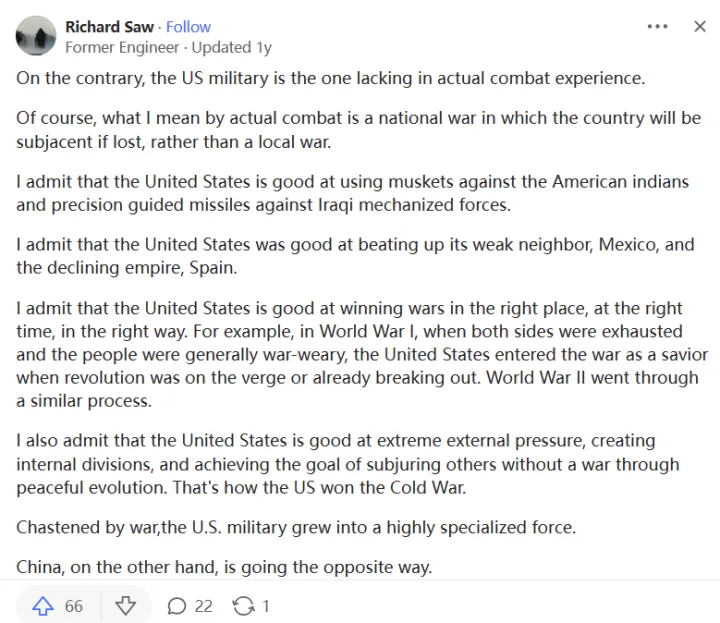 外網討論:如果美中發生軍事衝突,中國軍隊幾乎沒有任何作戰經驗,這將如何影響結果?_風聞