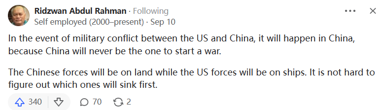 馬來西亞網民 Ridzwan Abdul Rahman 説: