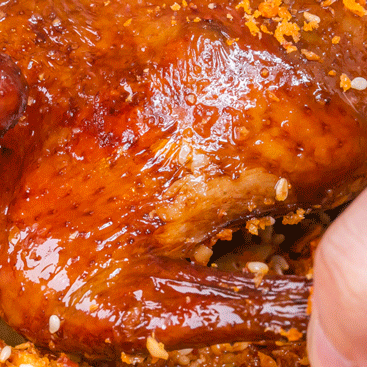 大漠烤雞本身烤前醃製已經非常到位,焦脆的皮是誘惑人味蕾的利器,內裏柔嫩多汁的豐腴口感更是讓人上癮,根本停不下來。