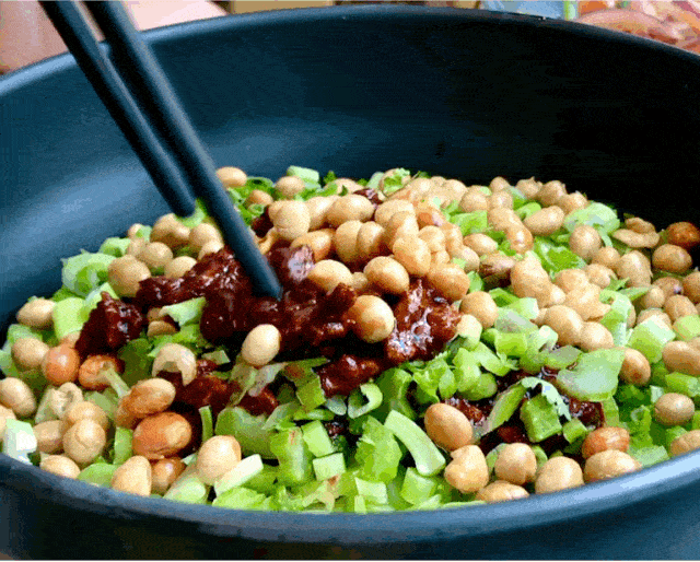 在這碗濃稠的熱辣中擔任解膩C位的是芹菜或泡菜,前者從濃郁中殺出一抹脆嫩的清新,後者則中和了辣味,以酸爽調和,讓炒米粉的風味更甚,構成一個新疆人最愛的複合味型——酸辣。