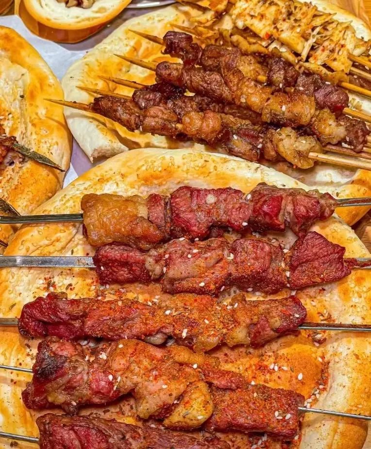 在新疆,饢的吃法多種多樣。饢+肉類的吃法在新疆也非常常見。