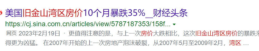 **二是次生影響會指數放大。**硅谷位於哪裏?加利福尼亞州著名的舊金山灣區。很巧,受美聯儲加息和科技企業裁員影響,舊金山灣區的房價在近0個月內急速下跌35%。