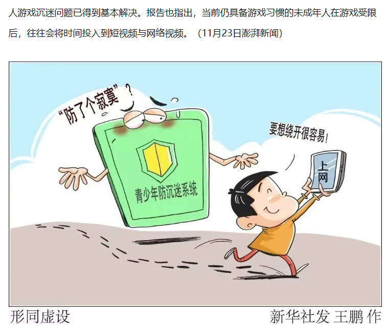 “避免孤立”,就是將國家、社會、學校、家庭都視作是網絡保護的責任主體,遊戲企業要推出相應的技術手段履行好保護未成年人的社會責任,家庭和學校也要培養好孩子的網絡素養,分辨明晰好的部分和壞的部分,不能搞“一刀切”。