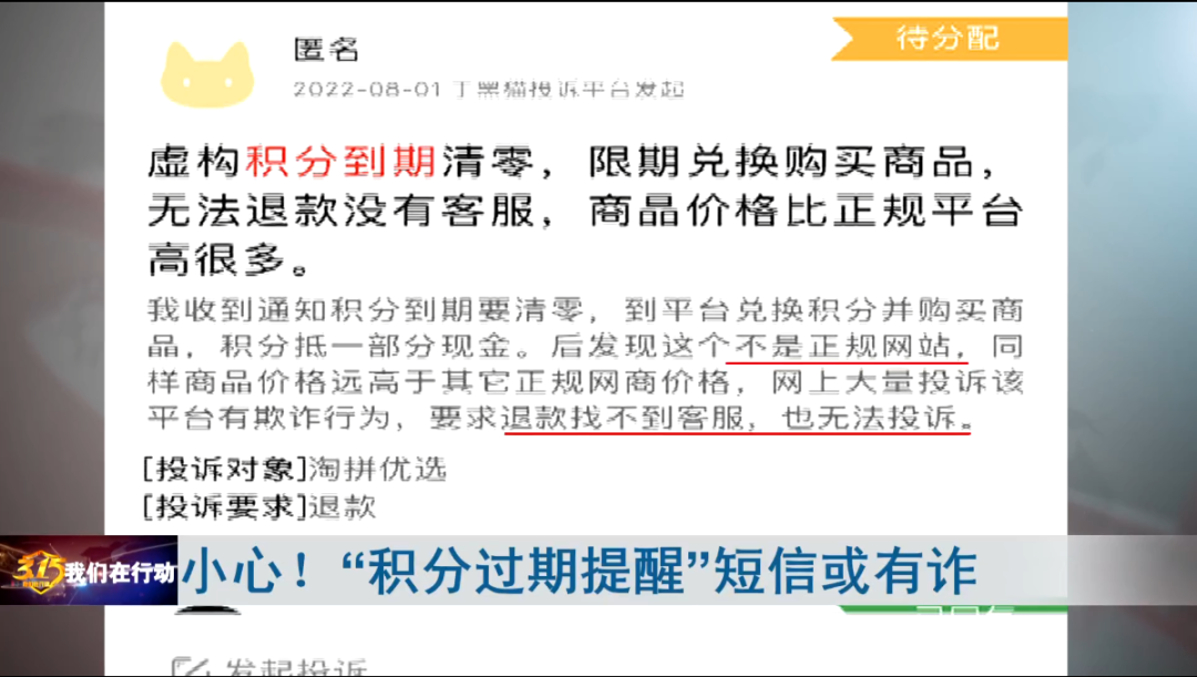 2022年9月,消費者王女士收到一條積分換購信息,餘額變動:尊敬的8578機主,您有12860分於9月16日全部過期!儘快點擊短信上的鏈接換購商品,謹防過期。