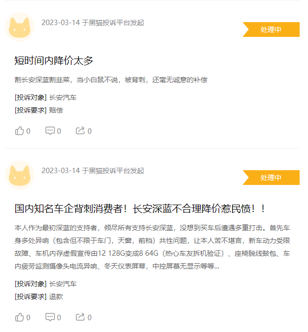 網絡上,“長安深藍背刺老車主”、“長安一生黑”的言論甚囂塵上。