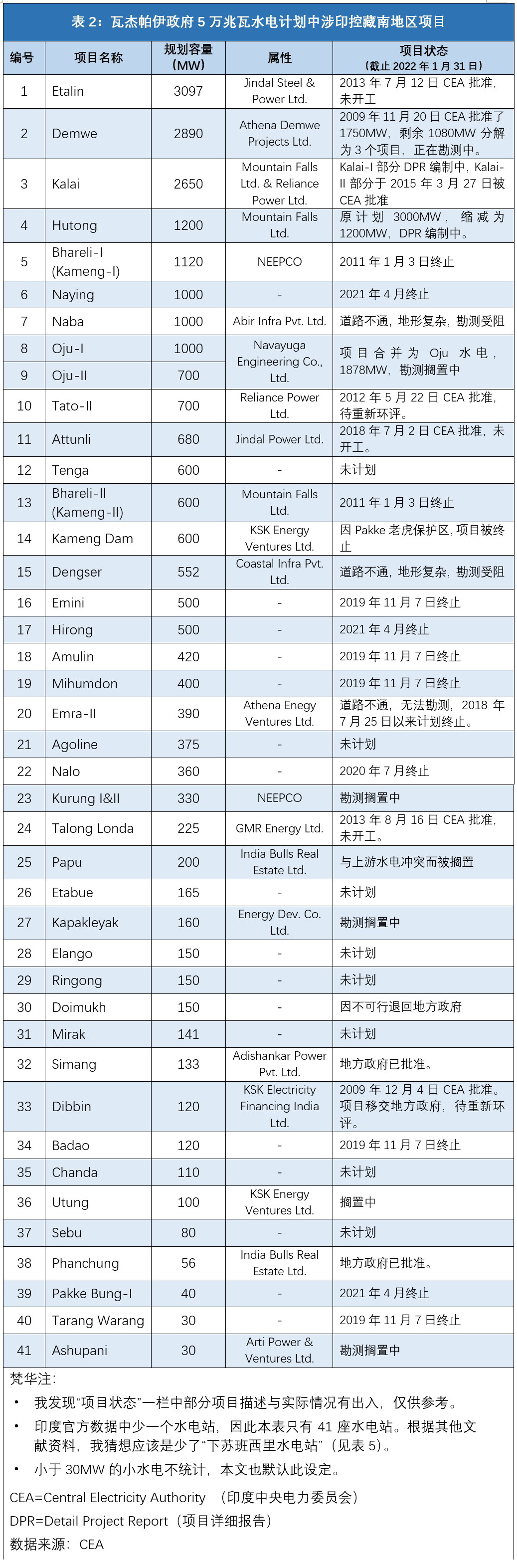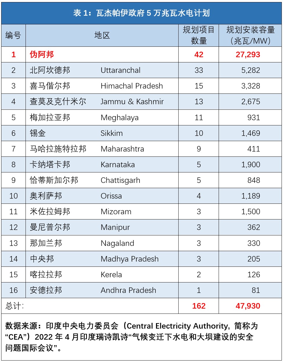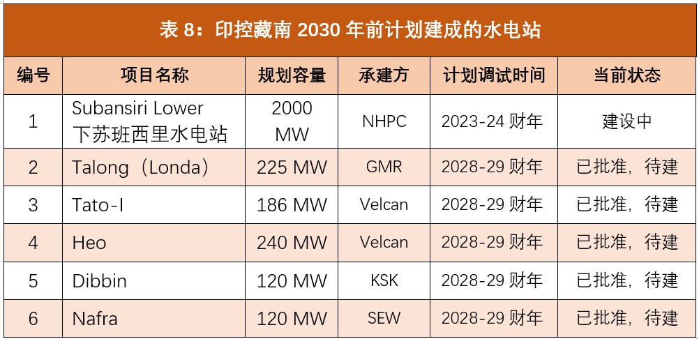 2003年5月24日,時任印度總理瓦傑帕伊宣佈了在印度全國建設162個水電項目、總計50,000兆瓦(等於50吉瓦,實際規劃47,930兆瓦)的龐大計劃。該計劃中,位於印控藏南偽阿邦地區的水電項目有42個,總計27,293兆瓦,超過了一半的規劃容量,凸顯瓦傑帕伊政府對印控藏南地區的重視程度。