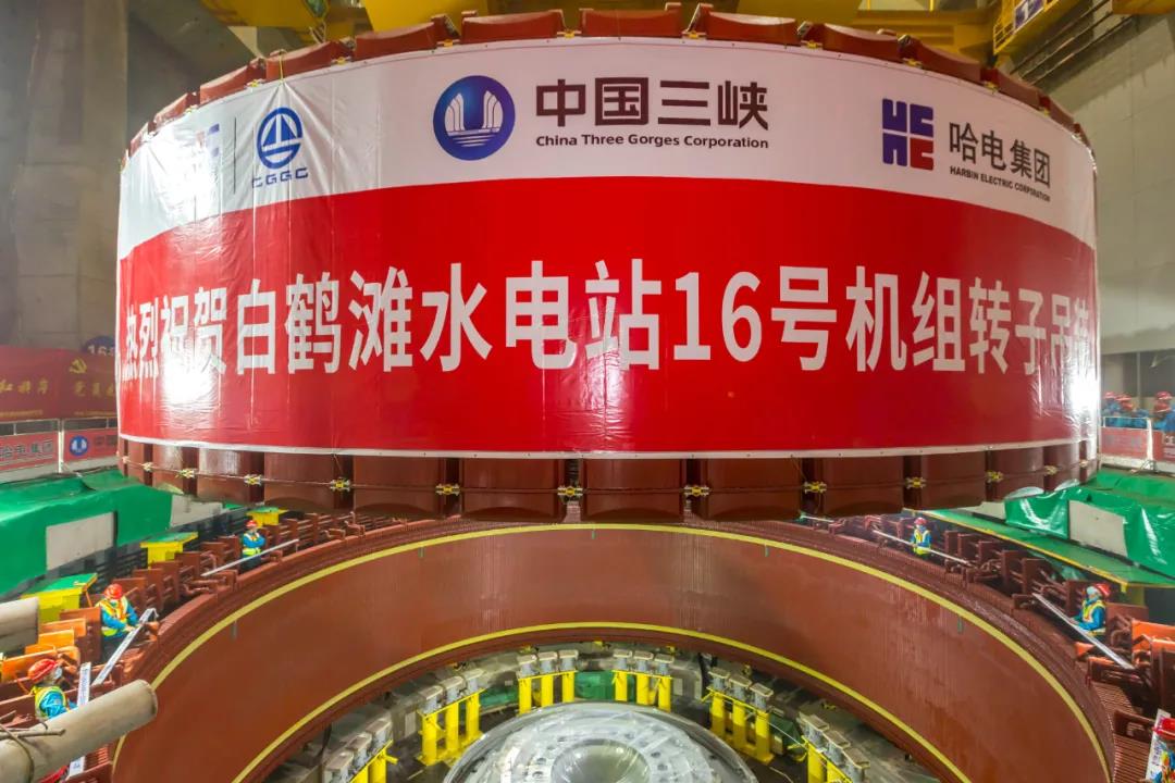 2021年1月31日,白鶴灘水電站16號機組轉子吊裝 | 圖源:國資委官網