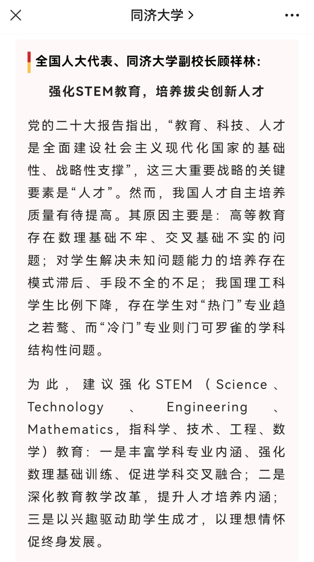 “我國理工科學生比例下降”,同濟大學副校長建議強化STEM教育,各位怎麼看?_風聞