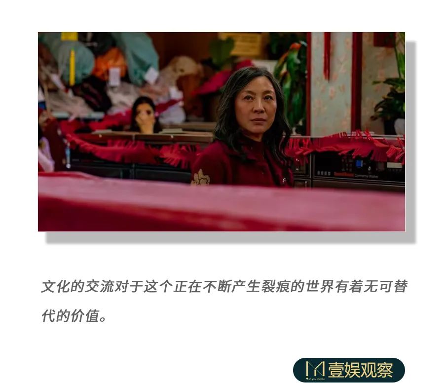 從湯唯通過《分手的決心》、楊紫瓊依靠《瞬息全宇宙》再一次讓歐美電影行業重新認識到華人演員的魅力不難看出,不同文化與類型之間的衝擊碰撞所能帶來的創作活力依然彌足珍貴,而這些活力無疑也是在創作上陷入瓶頸而停滯不前的當下好萊塢最為需要的一股力量,同時文化的交流對於這個正在不斷產生裂痕的世界同樣有着無可替代的價值。