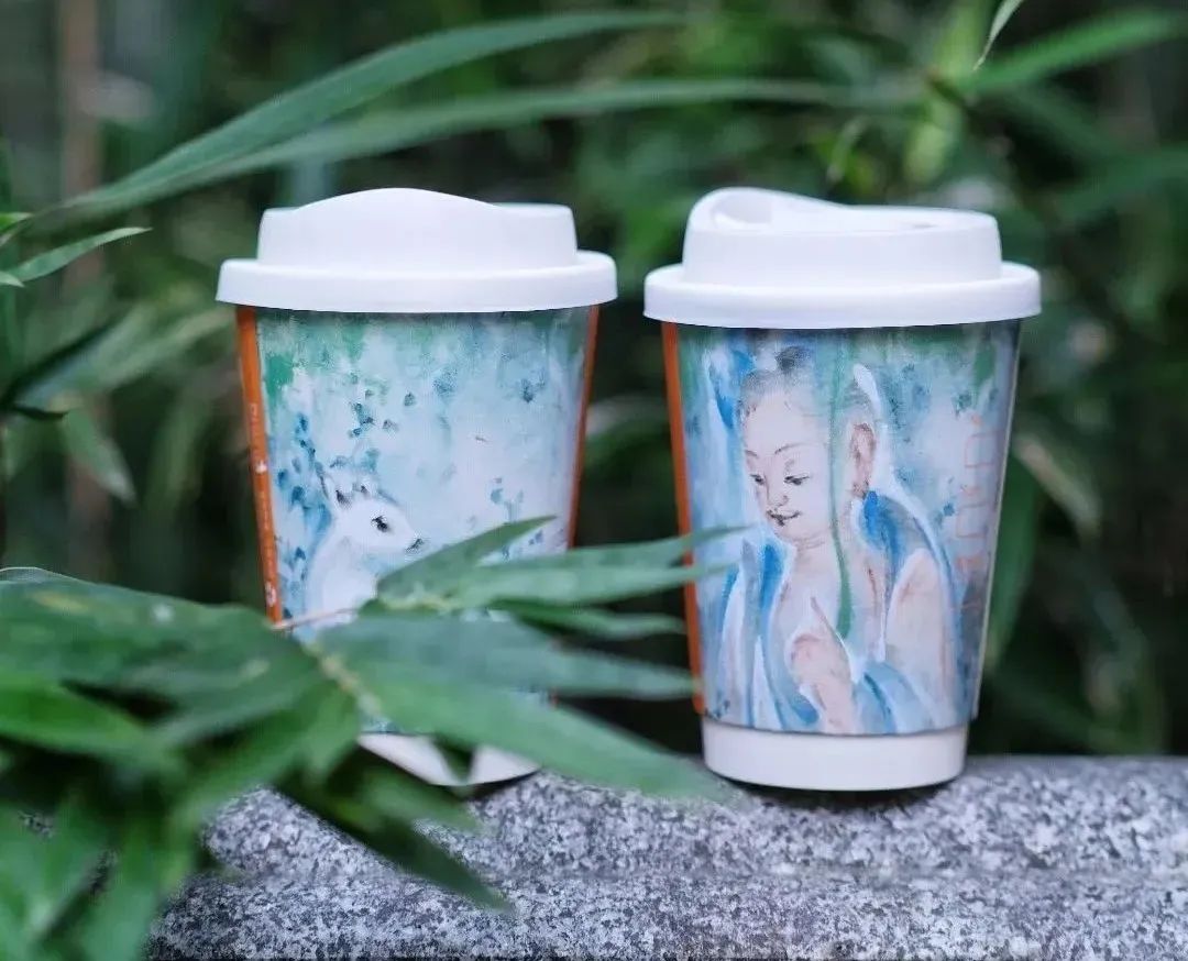 還要注意顏值。比如咖啡杯上的插畫,同樣帶有明顯的佛教元素。