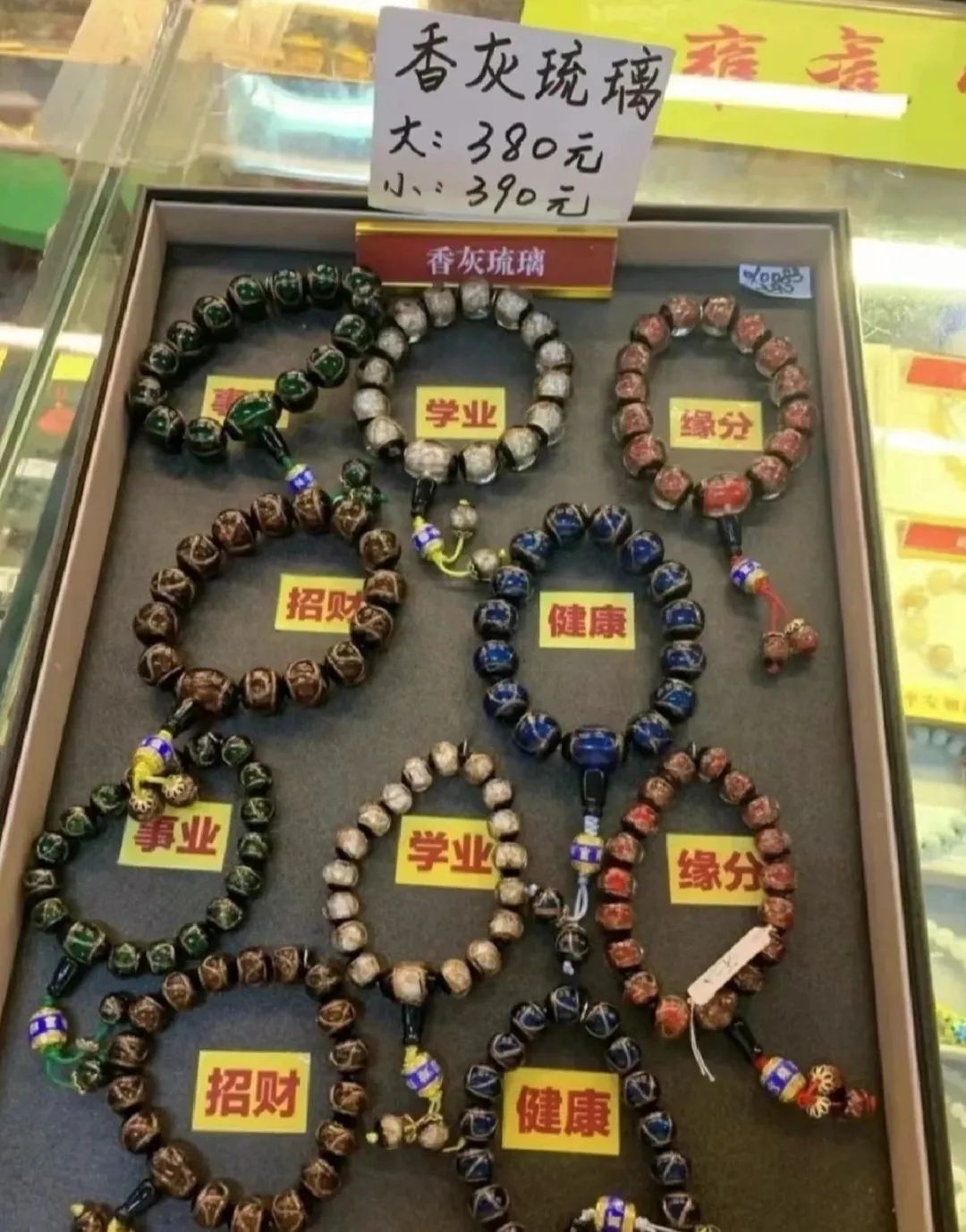 雍和宮的“香灰手串”供不應求,這是用香客們禮佛留下來的香灰,搭配琉璃或者瓷燒製成的手串,自帶光環,也自帶流量。