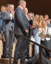 他整理了一下皺得根本不用整理且不太合身的西裝,站起來回應觀眾的掌聲,噙着眼淚鞠躬致意。