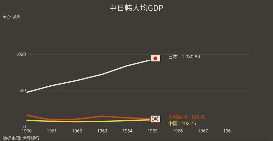 ▲1965年中日韓人均GDP(製圖@Datafind)