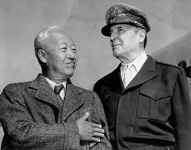▲李承晚與“聯合國軍”司令麥克阿瑟