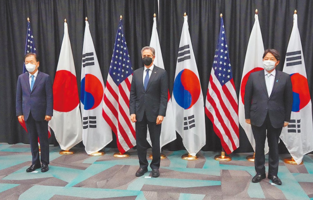 美國日韓關係冷淡並不利於美國的利益,美國對兩國不斷施加影響,試圖在東亞構建美日韓同盟。