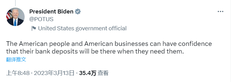 拜登説:美國人民和美國企業可以放心,他們的銀行存款會在他們需要的時候出現。