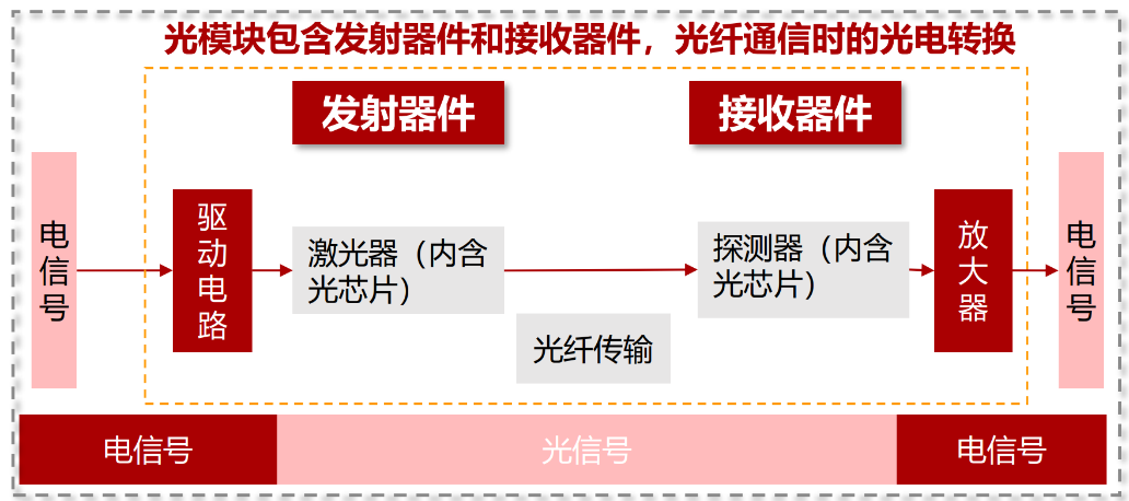 光模塊相當於算力傳輸的大腦,將電信號轉化為光信號進行輸出,再將接受的光信號轉化為電信號輸入,是連接算力的核心組件。