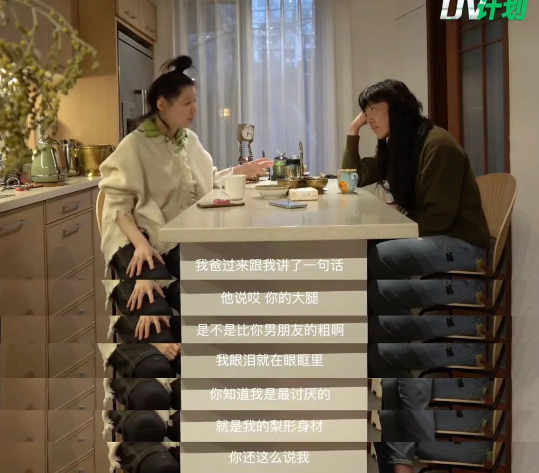 金靖減肥那段時間,每天節食運動,跳五千個繩,她爸爸明知她最在意自己減不下來的梨形身材,還要用語言刺激她: