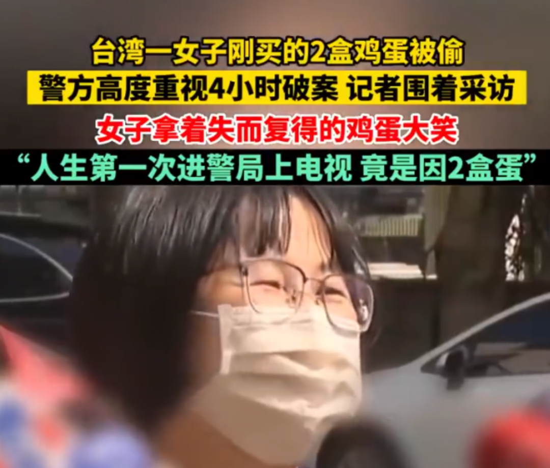 台灣一名女子因雞蛋被偷上電視。圖源:網絡