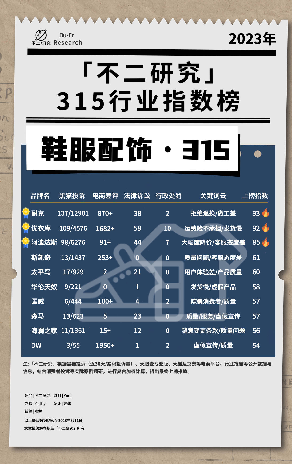 「不二研究」315行業指數榜,支持消費者維護合法權益,呼籲更清朗的維權環境;另一面,期望品牌方能夠以實際產品力與售後服務力,與消費者進行公平對話。