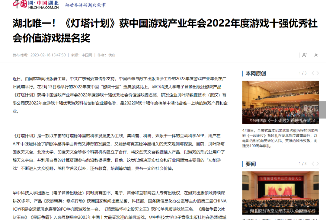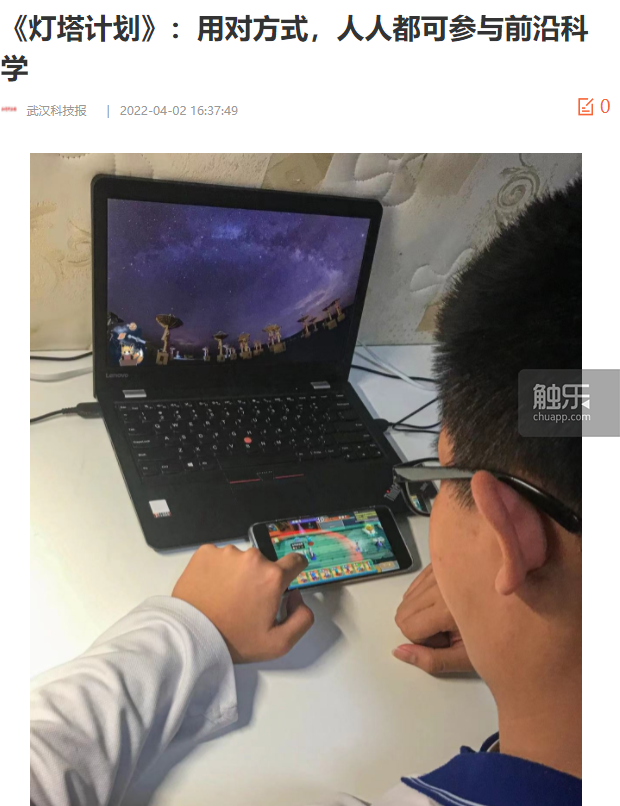 除了清平這部分喜歡科學或天文的玩家外,還有許多玩家是衝着更早的一條新聞來預約遊戲的。2022年2月20日,《武漢科技報》以《在App中與科學家共探星空》為題,報道了一個高中生通過《燈塔計劃》參與了科學研究,然後在天文學術雜誌《英國皇家天文學會月刊》上合作發表了論文的事兒。這件事幾乎引起了轟動,也正是靠着這個新聞,《燈塔計劃》才獲得了這麼多關注。