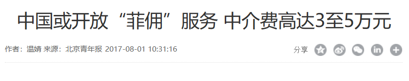 北京青年報:國內家政市場揭秘:菲傭打黑工五年不敢回國