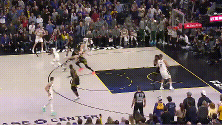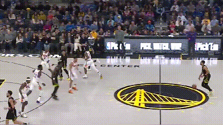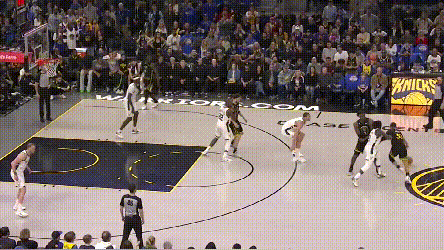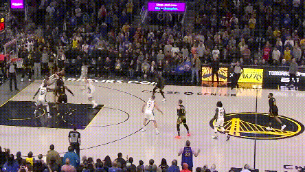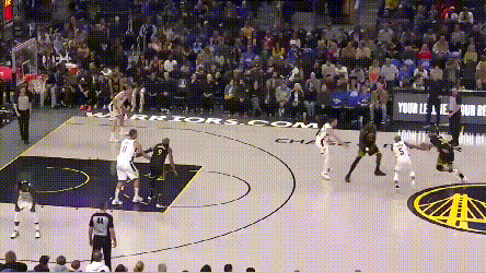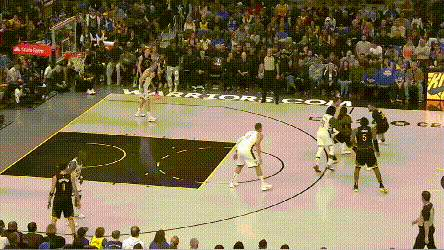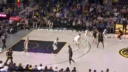 庫盧湯擋拆,再次出球底線追夢,接追夢上提三分線的手遞手,三分入魂;