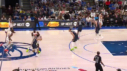 庫盧擋拆,出球底線追夢,再轉向底角接球,轉身三分;