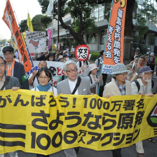 2012年10月13日,大江健三郎發起廢核運動,與日本民眾一起走上街頭,在東京都千代田區舉行示威遊行。