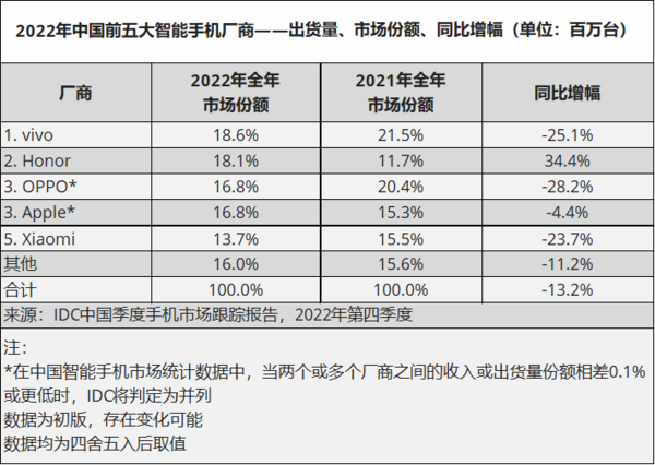 圖源:IDC中國季度手機市場跟蹤報告