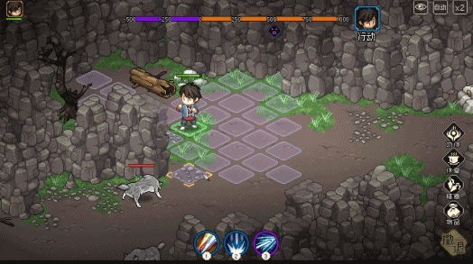 外功技能會隨着功法等級和品質的提升而提升範圍和威力,也算是比較常規的設定了,比如一開始劍系的游龍劍法只能打正前方兩格,到後期攻擊範圍會變成 T 字型的 5 格。