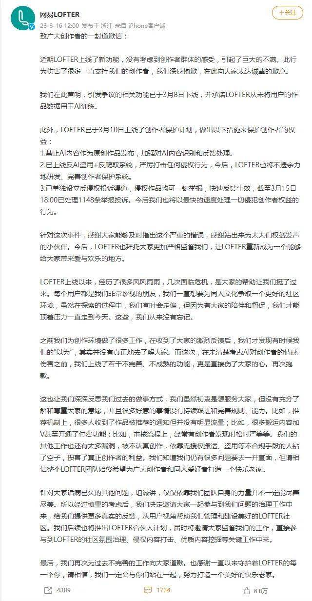 所以,需要抵制的也許並不是AI應用於生產,而是隨着AI深度參與生產,原有的版權體系、商業模式需要一場革新。在這個過程中,爭議是必然的,也是必須的,而新的規則,會在不斷的博弈中逐漸誕生。輿論場最該保護的,是所有羣體發出自己聲音的權利。