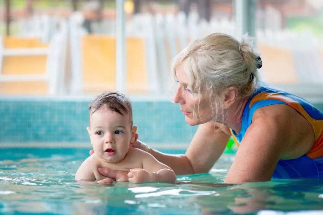 匈牙利的一名家長和孩子一起參加嬰兒游泳課程
