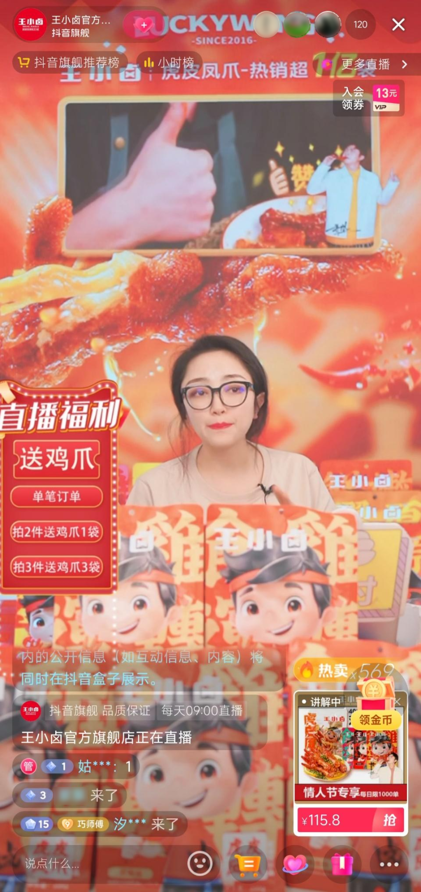 不僅如此,「摩登消費」還觀察到,在抖音上,經常會刷到王小滷等新滷味品牌“三班倒”全天候直播賣貨。