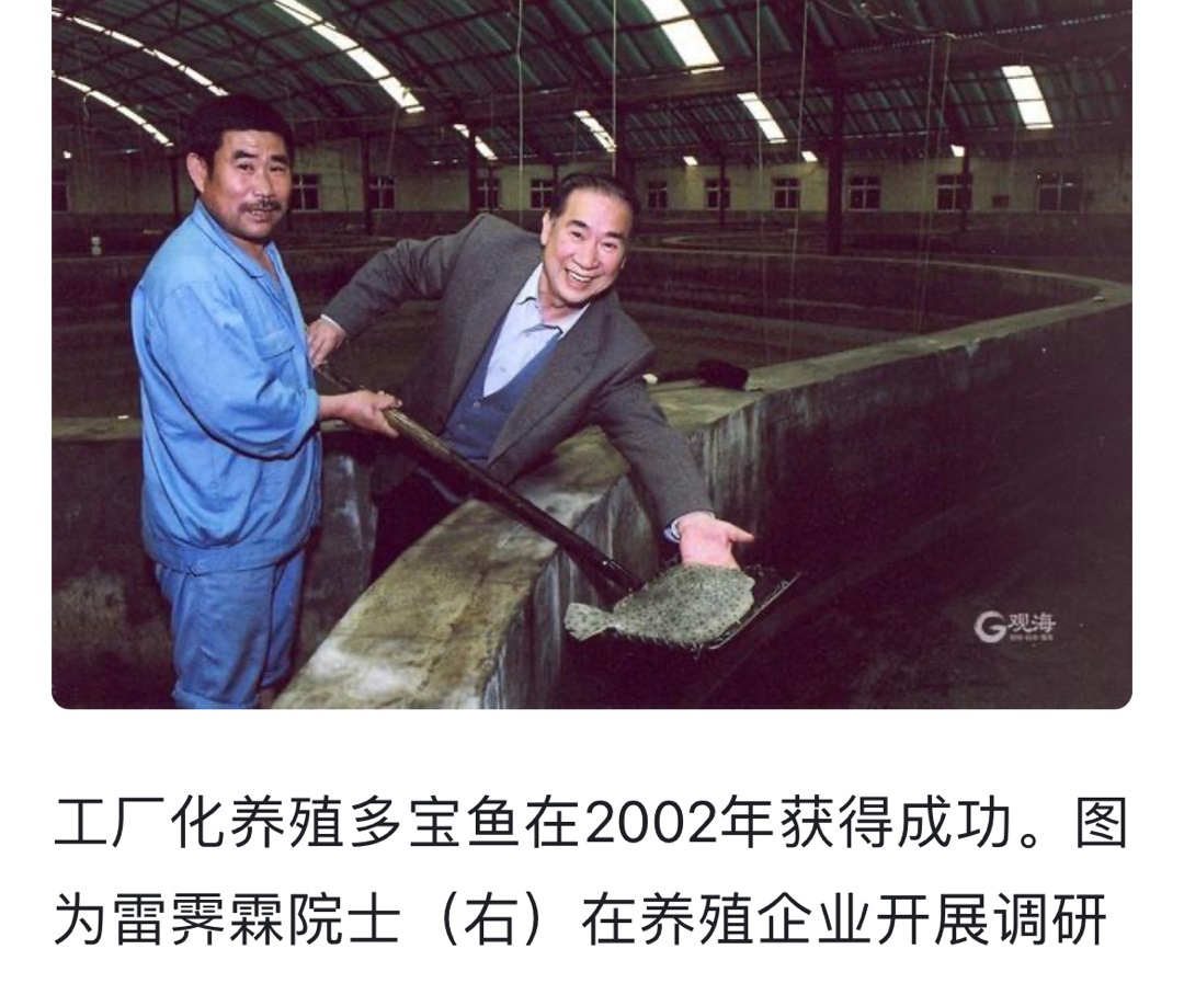 他説:當然有啊,大菱鮃之父雷院士,那是真厲害,我們整個產業鏈的人都很感謝他。他走的時候,給我們留下來一條完整的產業鏈,誰不感激他?這才是真正的專家……