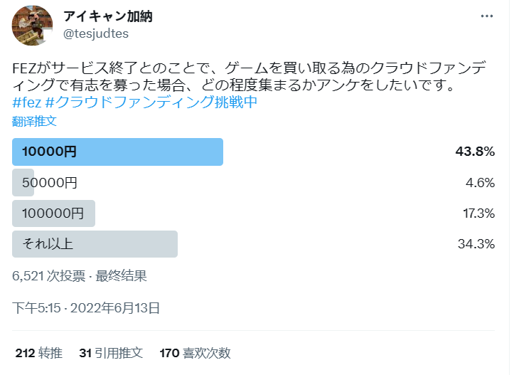 六千多人蔘與了請願活動,其中大部分都願意付出一萬日元(約五百人民幣)以上的金額來爭取遊戲繼續運營