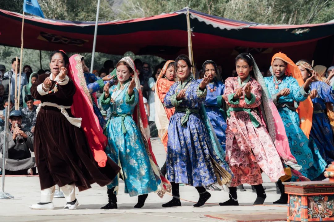 我後來在拉達克觀摩過很多場公開演出,其中不乏紀念巴庫拉仁波切誕辰一百週年、為大海喇嘛慶生、馬球賽總決賽開賽等“高規格”的重大演出,發現他們的節目安排除了跳舞還是跳舞——拉達克未婚少女穿着盛裝跳舞、中年婦女穿着傳統服裝跳舞、中年夫婦裝扮成國王王后跳舞、男學生跳舞、女學生跳舞、男女學生跳舞、藏族舞、穆斯林舞、寶萊塢舞……至於唱歌、小品、相聲、戲曲、樂器演奏之類的表演完全不存在,説白了就是把村裏的年輕人湊在一起整幾個舞蹈出來;假如你特別會跳舞,可能會讓你一個人反串好幾場。從節目內容的豐富性和表演水平來講,真還不如國內一些高中的文藝彙報演出;不過我得説,人家服化道的水平還是很高的,跳舞時候穿戴的都是真金白銀,一身行頭起碼得好幾萬塊錢。