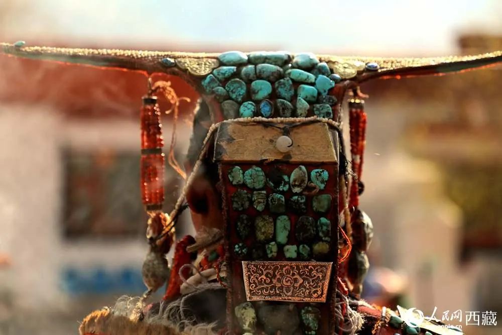 傳統上佩拉克只有已婚婦女才會佩戴,但如今它已經變異成為了一個拉達克的文化符號,通常由少女們在節日場合佩戴進行文藝表演。在那天的活動上,“少女組”戴着沉重的佩拉克排成一隊緩緩入場,“眼鏡蛇”狀頭飾對頭面的遮擋平添了一分羞赧,走一步退三步慢條斯理地踱着拉達克傳統舞步。可以想見,好幾公斤的份量壓在腦袋上,就算她們想要蹦蹦跳跳展現出少女青春洋溢的感覺恐怕也是無能為力。