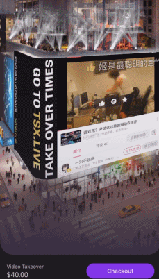 這一切興起的源頭,是一家名為TSX的APP,他們在今年1月發佈了這項40美元可租用大屏幕15秒的活動。