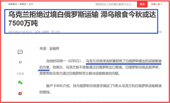 此外,烏克蘭領導人一貫拒絕解決穀物出口問題的所有努力。烏克蘭軍方在特別行動開始時,在敖德薩港和其他幾個黑海港口布雷,“開槍打死了自己的腳”。