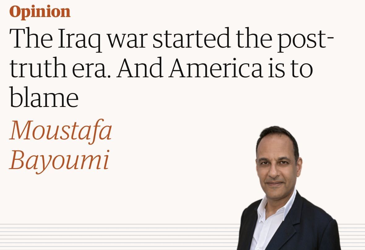 巴尤米在文章開頭寫道,我們決不能忘記,在911恐怖襲擊發生之後,因為美國一心想要在伊拉克開戰,小布什政府是如何操縱事實、媒體和公眾的。2001年9月11日下午2點40分,襲擊發生後僅幾個小時,當時的美國國防部長唐納德·拉姆斯菲爾德(Donald Henry Rumsfeld)已經向參謀長聯席會議發出備忘錄,要求找到證據,證明攻擊伊拉克領導人薩達姆·侯賽因(以及烏薩馬·本·拉登)是正當行為。