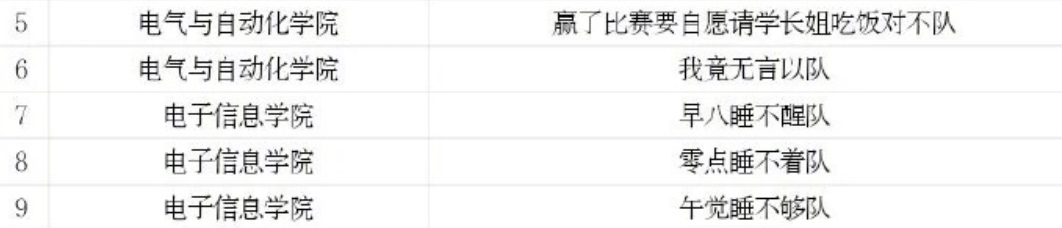 這些“腦洞大開”的隊名包括: