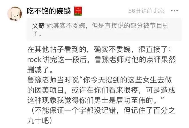 魯豫就在《脱口秀大會》中説過,女性忍着疼痛也要去做醫美項目,“造成這種現象,男士也是居功至偉的”。