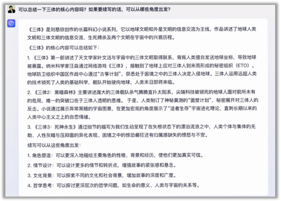 比如官方給的演示裏,它能分析文學作品的核心內容,甚至可以續寫。