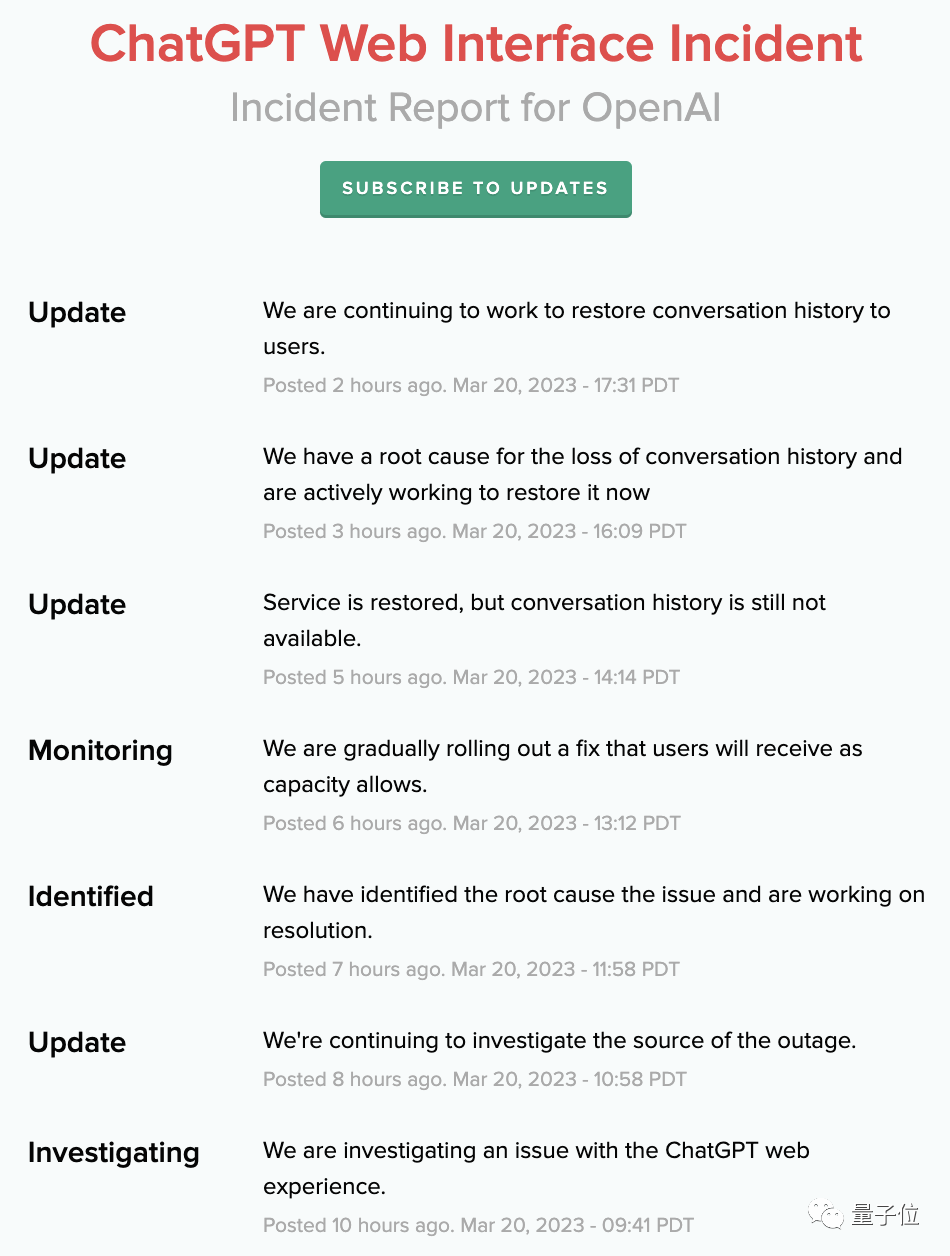 從中我們還看到,OpenAI也只是恢復了正常的Chat功能,歷史聊天記錄還沒恢復——弄清其中的原因也花了倆小時。
