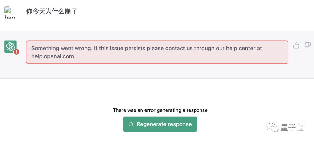 而我們試着問了一下“你今天為什麼崩潰”,它居然立刻又崩了。